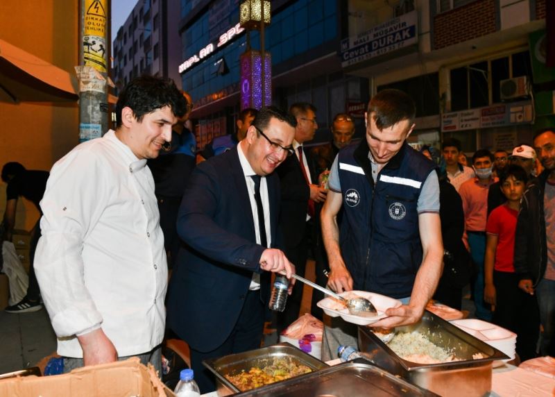 Ramazan ayının bereketi, huzuru içerisinde kurulan yüzlerce sofra, bu önemli ayın huzurlu atmosferini Adnan Menderes Meydanında yaşattı. Adnan Menderes Meydanında hummalı bir çalışma ile sabah saatlerinde tüm hazırlıklarını tamamlamaya başlayan ekipler, iftar saatine kadar eksiksiz bir şekilde tüm cadde ve sokaklara taşan koca bir iftar sofrası kurdu.
