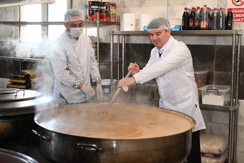 Başkan Dinçer, iftar hazırlıklarının yapıldığı mutfağı ziyaret ederek çalışmaları yerinde inceledi. Önlüğünü giyip yemek karıştıran Dinçer, hazırlık sürecine bizzat katkıda bulunarak personele kolaylıklar diledi.