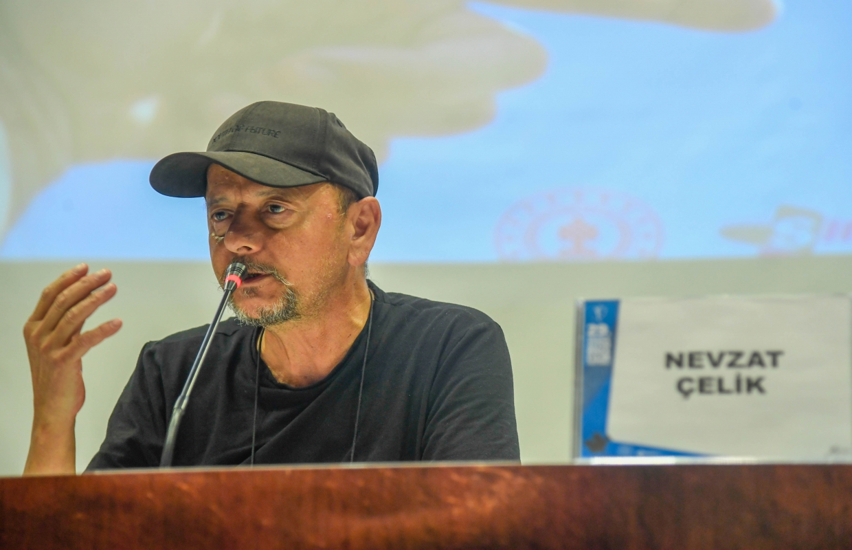Nevzat Çelik ise, ‘’Şiirle sinema birbirini destekliyor. Şiirin en yakın olduğu yaratım sinema, sinemanın en yakın olduğu alan da şiir oluyor. Hepsini yönlendiren şiir. Şiirsiz hiçbir şey düşünemeyiz. Hiçbir şey imgesiz kendini var edemez. Bu yüzden sinema en çok şiirden beslenir. Şiir sestir, renktir, ritimdir uyumdur. Hayatın içinde de şiir var. Fakat biz bunu bazen sezemiyoruz, geçip gidiyoruz. Şair bunu kurguyla sezgiyle, akılla, bilgiyle duyuruyor ve o zaman fark ediyoruz. Her iyi heykeltıraş, her iyi ressam ve her iyi yönetmen çok usta şairdir aynı zamanda. Şiir özellikle sinemada güçlüdür ve her iyi yönetmenler de usta şairlerdir’’ dedi.