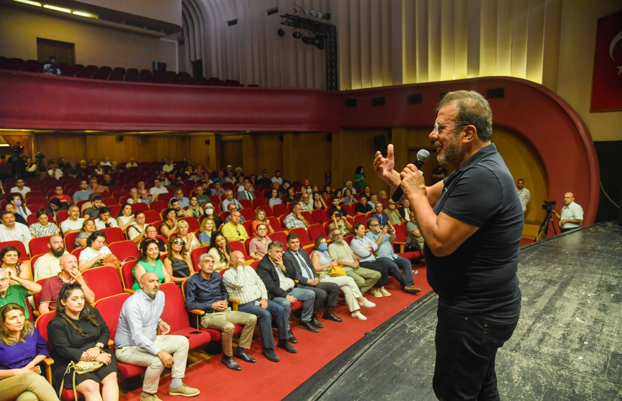 Adana Büyükşehir Belediyesi Şehir Tiyatrosu Salonu’nda gerçekleşen söyleşide, sinema ve şiirin birbiriyle ilişkisi üzerine konuşuldu.