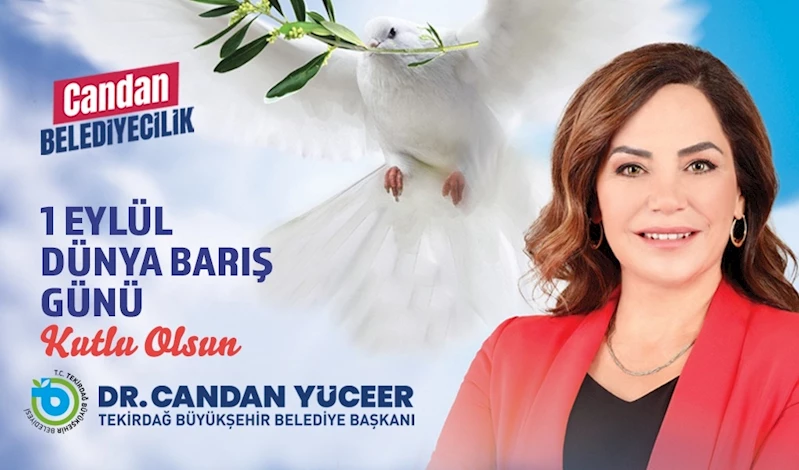 Tekirdağ Büyükşehir Belediye Başkanı Candan Yüceer, 1 Eylül Dünya Barış Günü dolayısıyla bir mesaj yayımladı. Candan Başkan, mesajında şu ifadelere yer verdi: