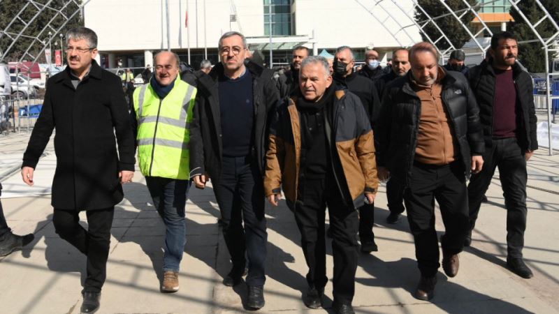 Depremin meydana geldiği ilk andan itibaren sahada vatandaşların yanında olan Kahramanmaraş Büyükşehir Belediye Başkanı Hayrettin Güngör, Milli İrade Meydanı’nda depremzedelerle bir araya gelerek geçmiş olsun dileklerini iletti. Kayseri Büyükşehir Belediye Başkanı Memduh Büyükkılıç ve ilçe belediye başkanlarının da yer aldığı ziyarette Başkan Hayrettin Güngör, gerçekleştirilen çalışmalara ilişkin heyete bilgiler aktardı. Vatandaşların barınma ve yeme içme ihtiyaçlarının karşılanması noktasında çalışmaların aralıksız devam ettiğini belirten Başkan Güngör, “6 Şubat Pazartesi günü Pazarcık ve Elbistan’da meydana gelen depremler sonrası maalesef çok sayıda vatandaşımızı kaybettik. Yaralılarımız var. Ülkemizin ve dünyanın dört bir yanından gelen yardımlarla hep birlikte yaralarımızı sarmaya çalışıyoruz. Zor günümüzde yanımızda olan herkese canı gönülden teşekkür ediyorum” dedi.