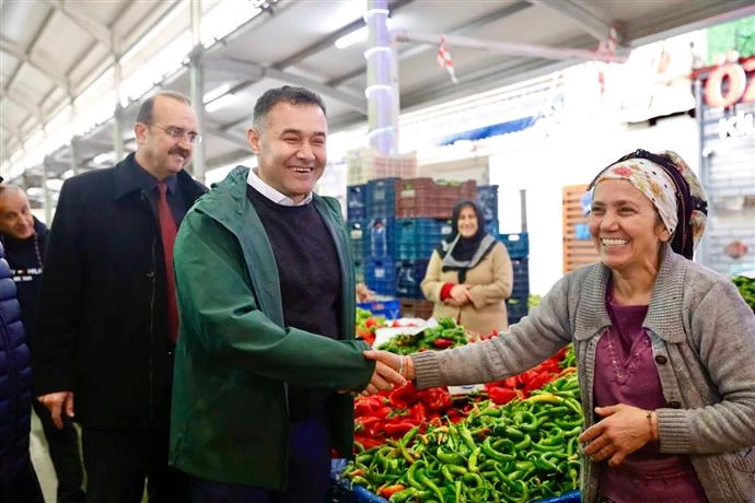 buluştu. Pazar esnafının ve vatandaşların taleplerini tek tek dinleyen Belediye