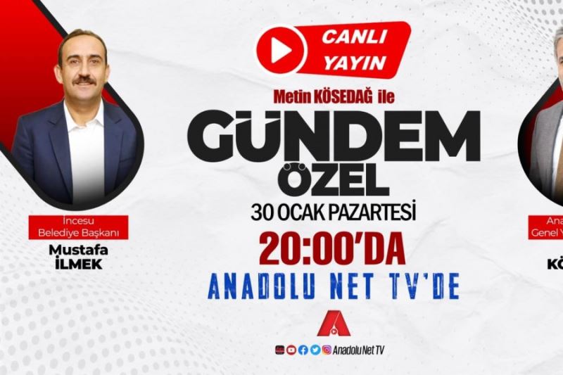 Belediye Başkanımız Av. Mustafa İlmek, Yarın saat 20:00'de Anadolu Net Tv'de Genel Yayın Yönetmeni Metin Kösedağ'ın konuğu olacaktır.