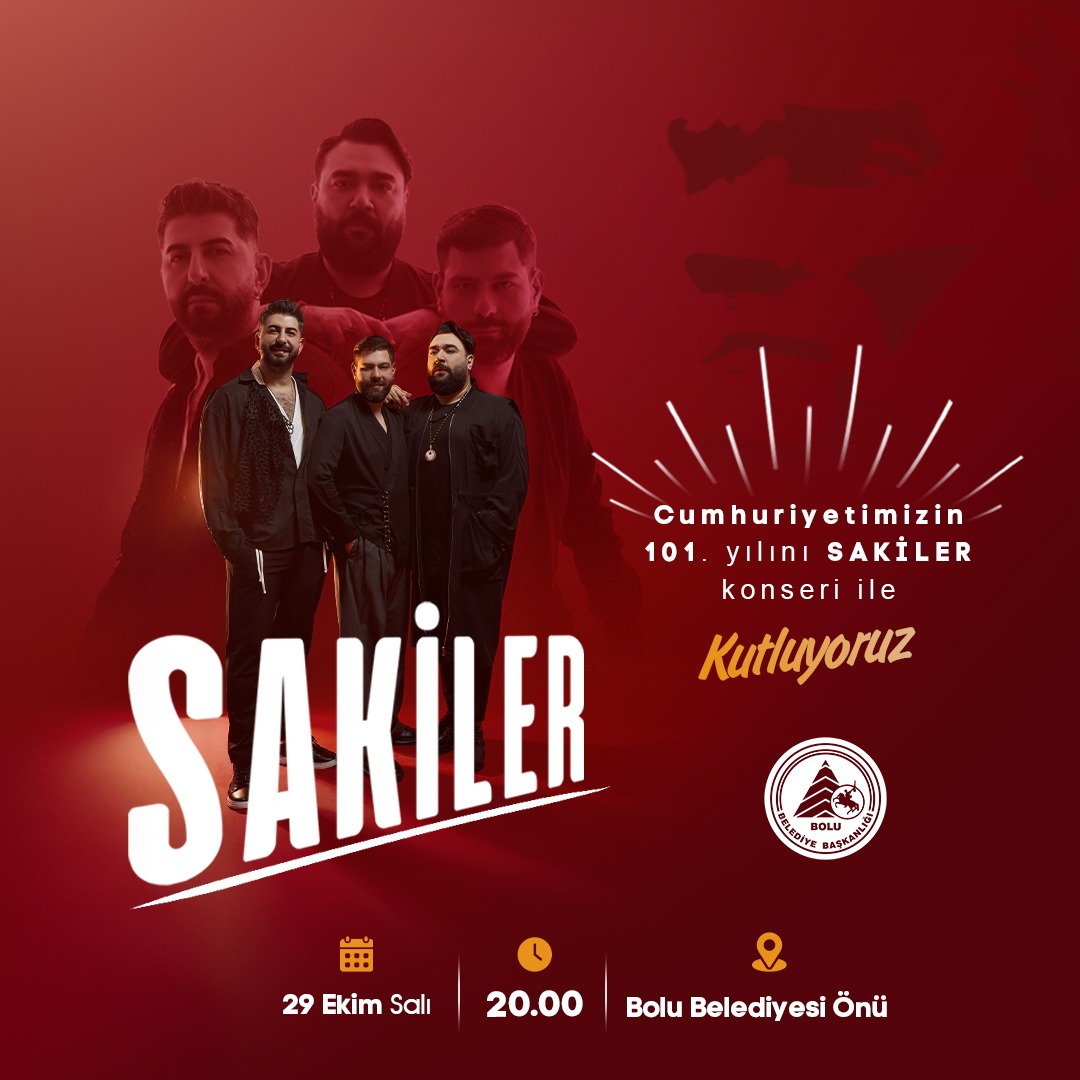 Ulusal ve milli bayramları coşkuyla kutlayan Bolu Belediyesi, 29 Ekim Cumhuriyet Bayramı’nda “Sakiler” konseri düzenleyecek.