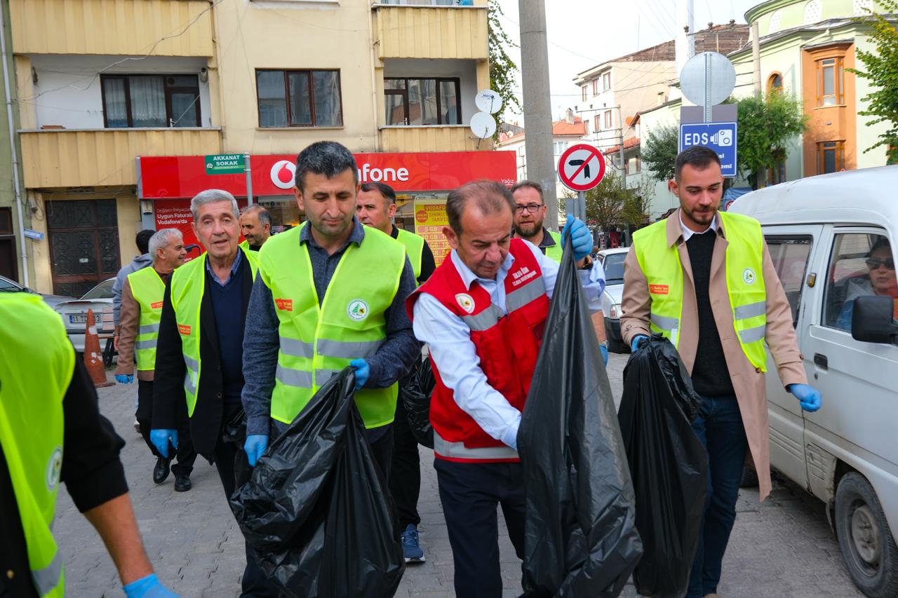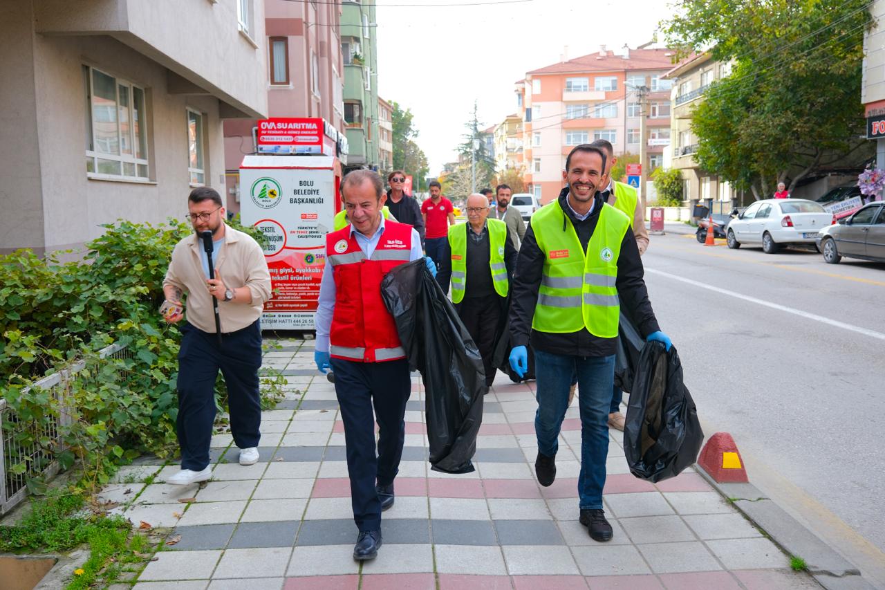 Bolu Belediye Başkanı Tanju Özcan, başkan yardımcıları ve merkez mahalle muhtarlarıyla birlikte Bolu'nun en işlek cadde ve sokaklarında çöp ve izmarit toplama etkinliği düzenledi. 2 km'lik yürüyüş mesafesinde gerçekleştirilen etkinlik Uğur Mumcu Parkı'nda sona erdi.