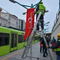 Bursa Büyükşehir Belediye Başkanı Mustafa Bozbey’in talimatıyla geniş çaplı bir uygulama başlatıldı. Belediye binaları, BursaRay istasyonları, belediye otobüsleri ve otoparklar dahil olmak üzere kuruma ait tüm alanlar, ay yıldızlı bayraklarla süslendi.