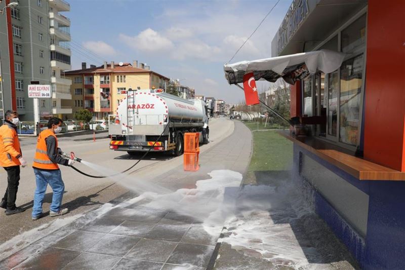CADDELER KORONAVİRÜSE KARŞI YIKAYARAK DEZENFEKTE EDİLİYOR.