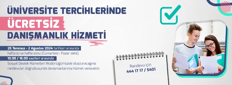 16 Temmuz 2024'te açıklanan YKS sonuçları sonrasında üniversite tercih işlemlerinde alanında uzman danışmanlarımız tarafından ücretsiz danışmanlık hizmeti sağlanacak.