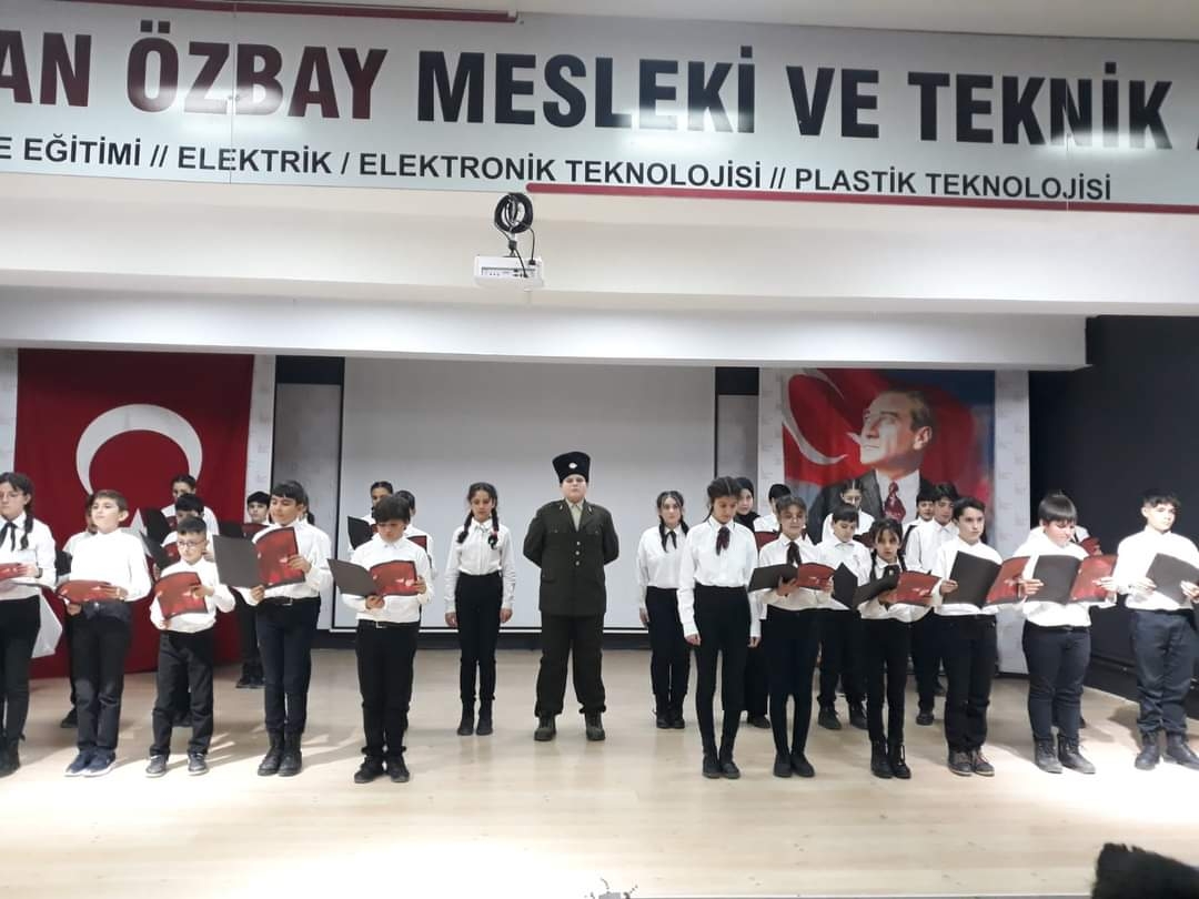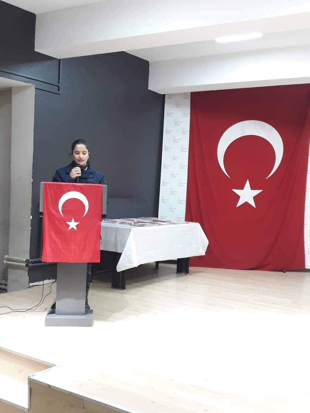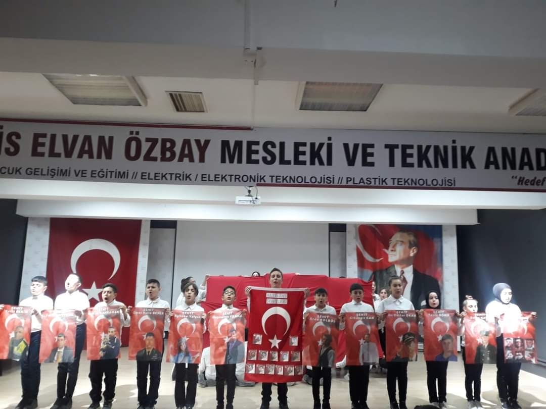 18 Mart Şehitleri Anma Günü ve Çanakkale Zaferi’nin 108. yıl dönümü münasebetiyle; İlçe Kaymakamımız, Sn.Bilal Basrı, Kurum Amirleri ve öğrencilerimizin katılımı ile, Şehit Polis Elvan Özbay Mesleki ve Teknik Anadolu Lisesi Konferans Salonunda düzenlenen anma programına katıldık.