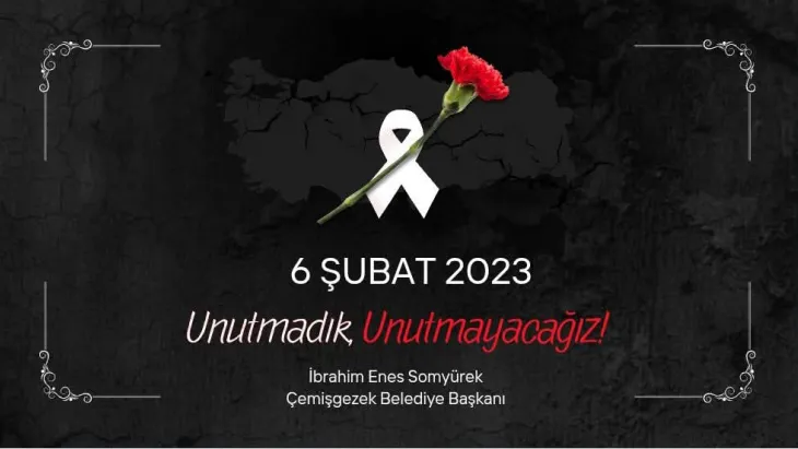 Çemişgezek Belediye Başkanı İbrahim Enes Somyürek, yıl dönümü dolayısıyla bir mesaj yayımladı. Somyürek, mesajında felakette hayatını kaybeden tüm vatandaşları rahmet ve minnetle andığını ifade etti.