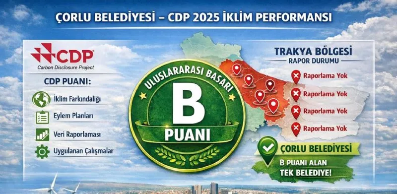 Şeffaf ve çevre odaklı yönetim anlayışıyla öne çıkan Çorlu Belediyesi, iklim kriziyle mücadele kapsamında yürüttüğü projelerin karşılığını uluslararası arenada aldı. Sera gazı emisyonlarının azaltılması, enerji yönetimi ve iklim eylemi konularındaki kapsamlı incelemeler sonucunda elde edilen "B" puanı, belediyenin bu alandaki somut adımlarının bir tescili niteliğinde.