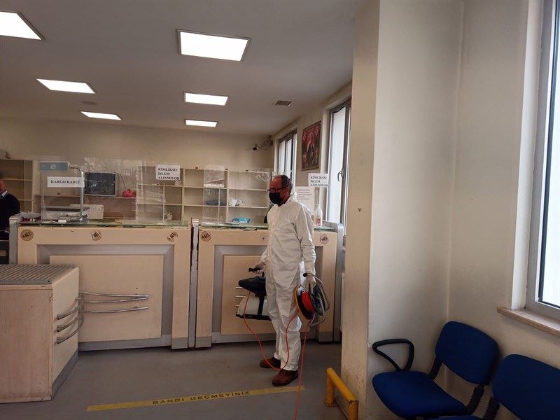 Dezenfeksiyon çalışmalarımız kapsamında, kamu kurum ve kuruluş hizmet binaları başta olmak üzere öğrenci yurtları, iş yerleri ve birçok noktada dezenfeksiyon çalışmalarımız devam etmektedir. Özellikle vatandaşlarımızın sıkça kullandığı noktalarda yürütülen çalışmalarımızla bulaş riskinin azaltılması hedeflenmektedir.