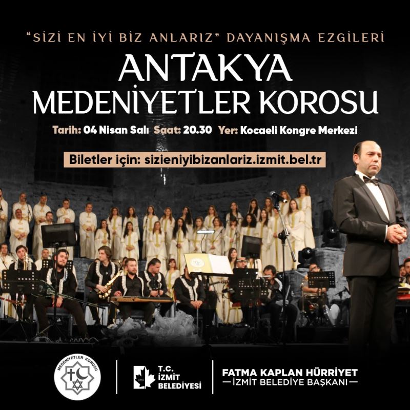 İzmit Belediyesi öncülüğünde depremzedeler için organize edilen ‘Sizi En İyi Biz Anlarız Dayanışma Ezgileri’ konseri kapsamında bu akşam Hatay Antakya Medeniyetler Korosu İzmitlilerle buluşacak