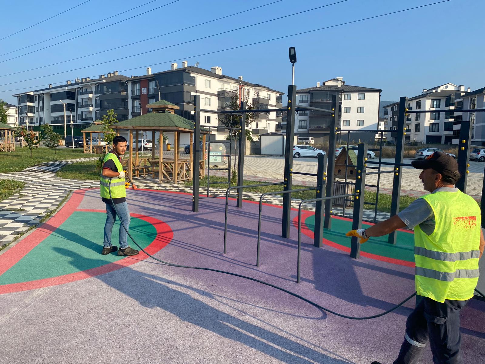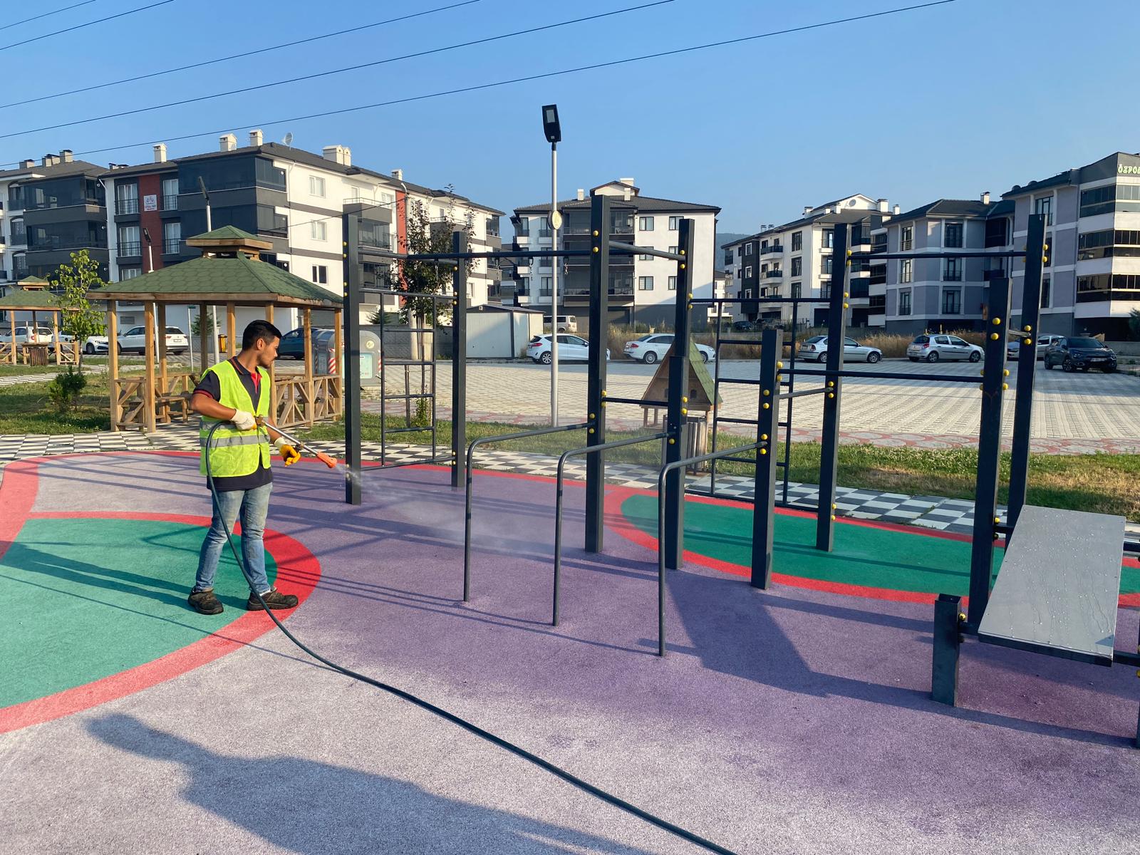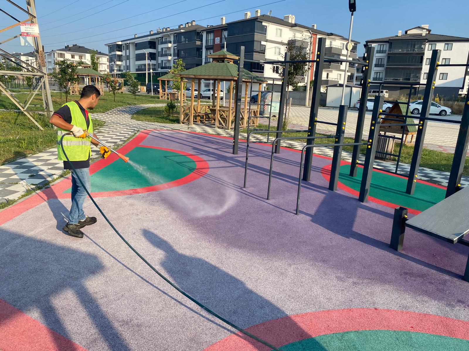 Yaz aylarında artış seyrine giren el ayak hastalıklarına karşı önlem alan Bolu Belediyesi ilaçlama ekipleri, il genelindeki parklarda dezenfeksiyon çalışmaları gerçekleştiriyor.