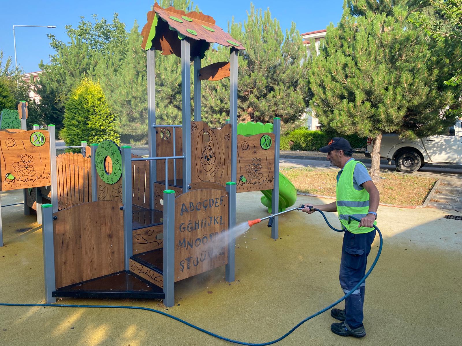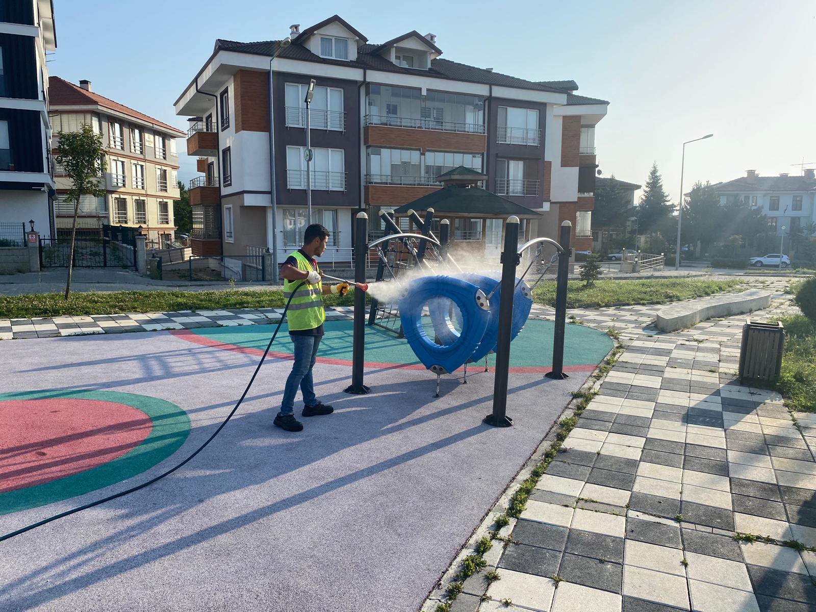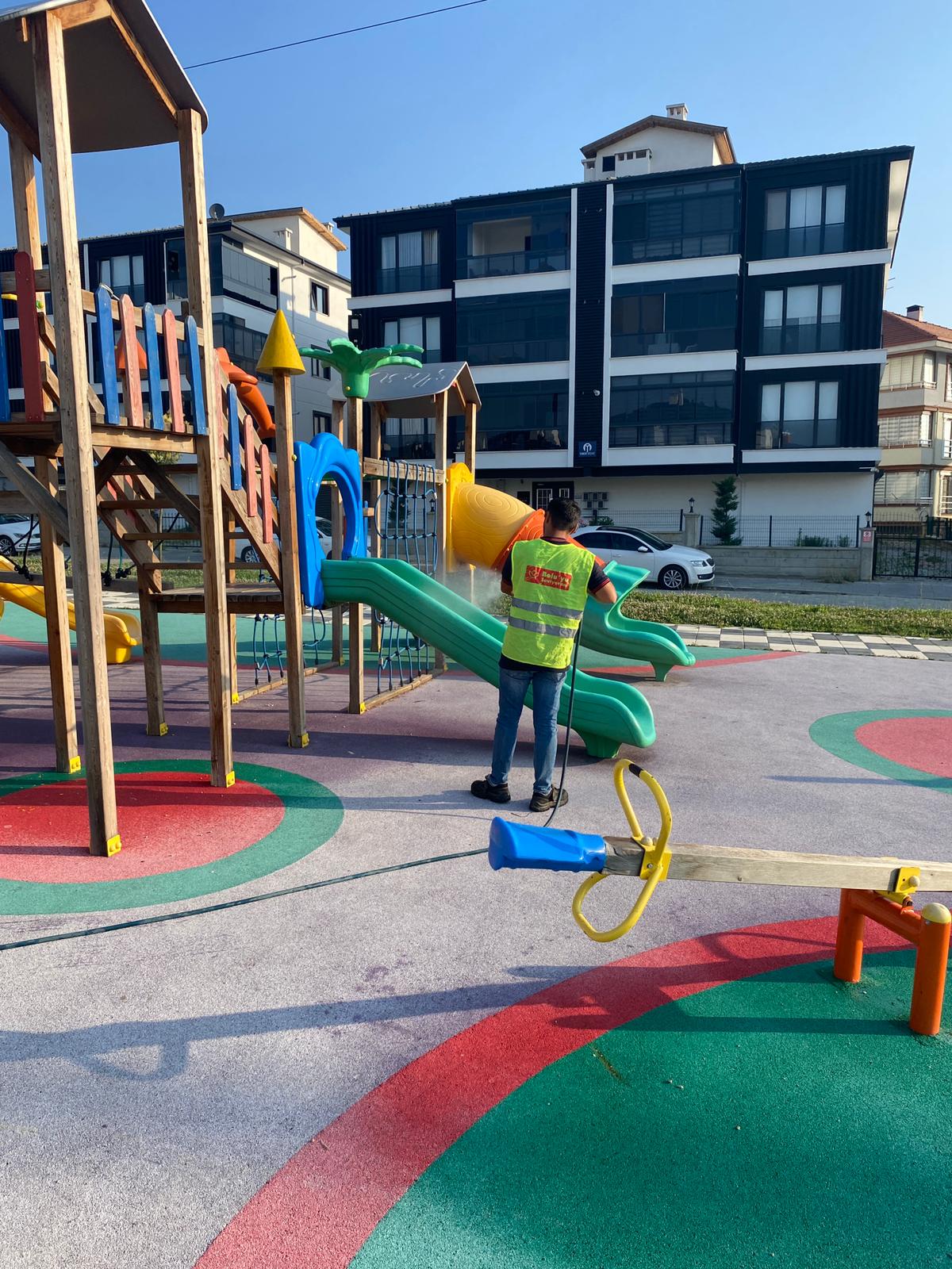 Bu doğrultuda il genelindeki tüm parklarda ilaçlama çalışması başlatan ekipler, özellikle çocukların yoğun vakit geçirdiği oyun gruplarını Sağlık Bakanlığı onaylı dezenfektanlarla ilaçlıyor.