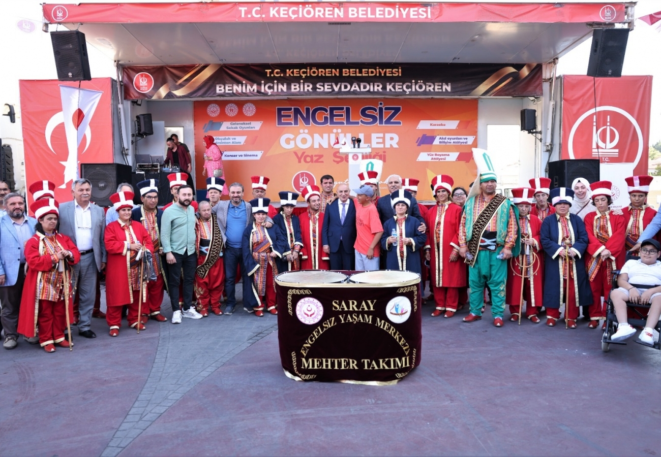 Keçiören Belediyesi ve Ankara Aile ve Sosyal Hizmetler İl Müdürlüğü iş birliğinde düzenlenen 4-5 Ağustos tarihli Engelsiz Gönüller Yaz Şenliği, Saray Engelsiz Yaşam Bakım ve Rehabilitasyon Merkezi Müdürlüğü Mehter Takımı’nın müzik dinletisi ile Keçiören’de başladı.