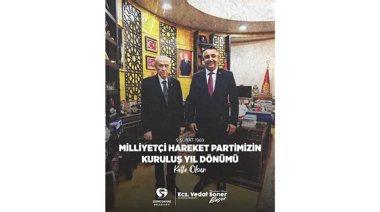 Gümüşhane Belediye Başkanı, Milliyetçi Hareket Partisi'nin (MHP) 57. kuruluş yıl dönümünü kutladı. Başkan, bu önemli gün münasebetiyle resmi bir kutlama mesajı yayımladı.