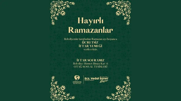 Gümüşhane Belediyesi, yaklaşan Ramazan ayı boyunca kentte ücretsiz iftar yemeği dağıtımı yapacağını duyurdu. Bu sosyal sorumluluk projesi, ay süresince kesintisiz devam edecek.