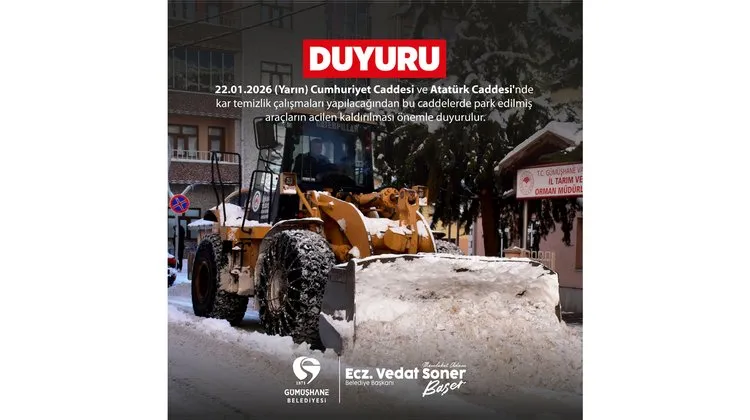Gümüşhane Belediyesi, kamuoyunu bilgilendirmek amacıyla resmi bir duyuru yayınladı. Duyurunun içeriği, ilgili tüm vatandaşların dikkatine sunuldu.
