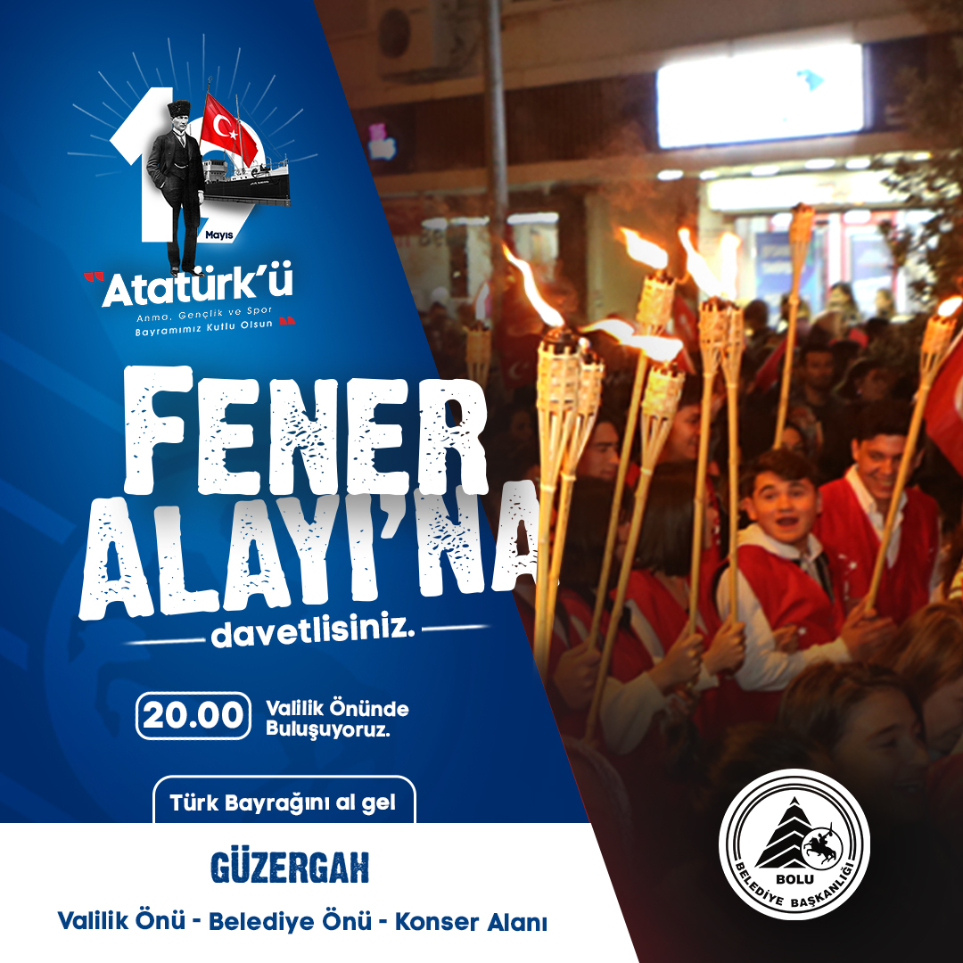 Bolu Belediyesi, 19 Mayıs Pazar akşamı düzenleyeceği Fener Alayı yürüyüşüne tüm Bolu halkını davet etti.