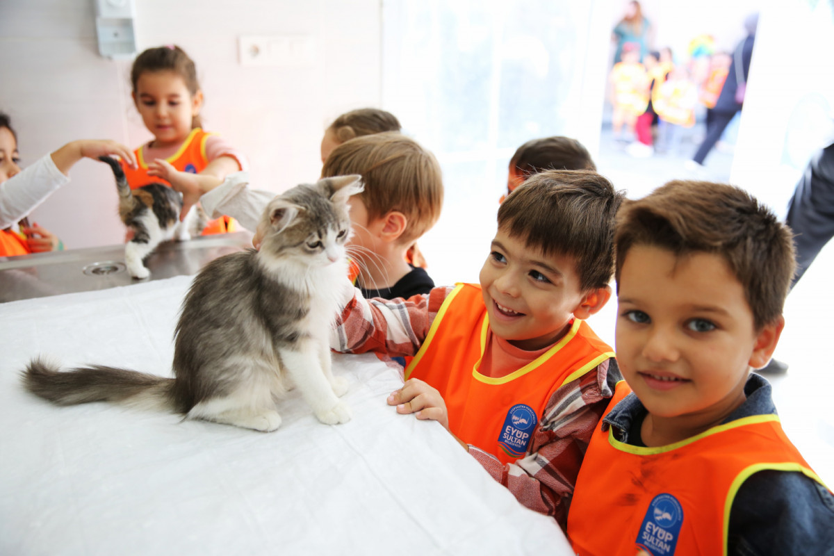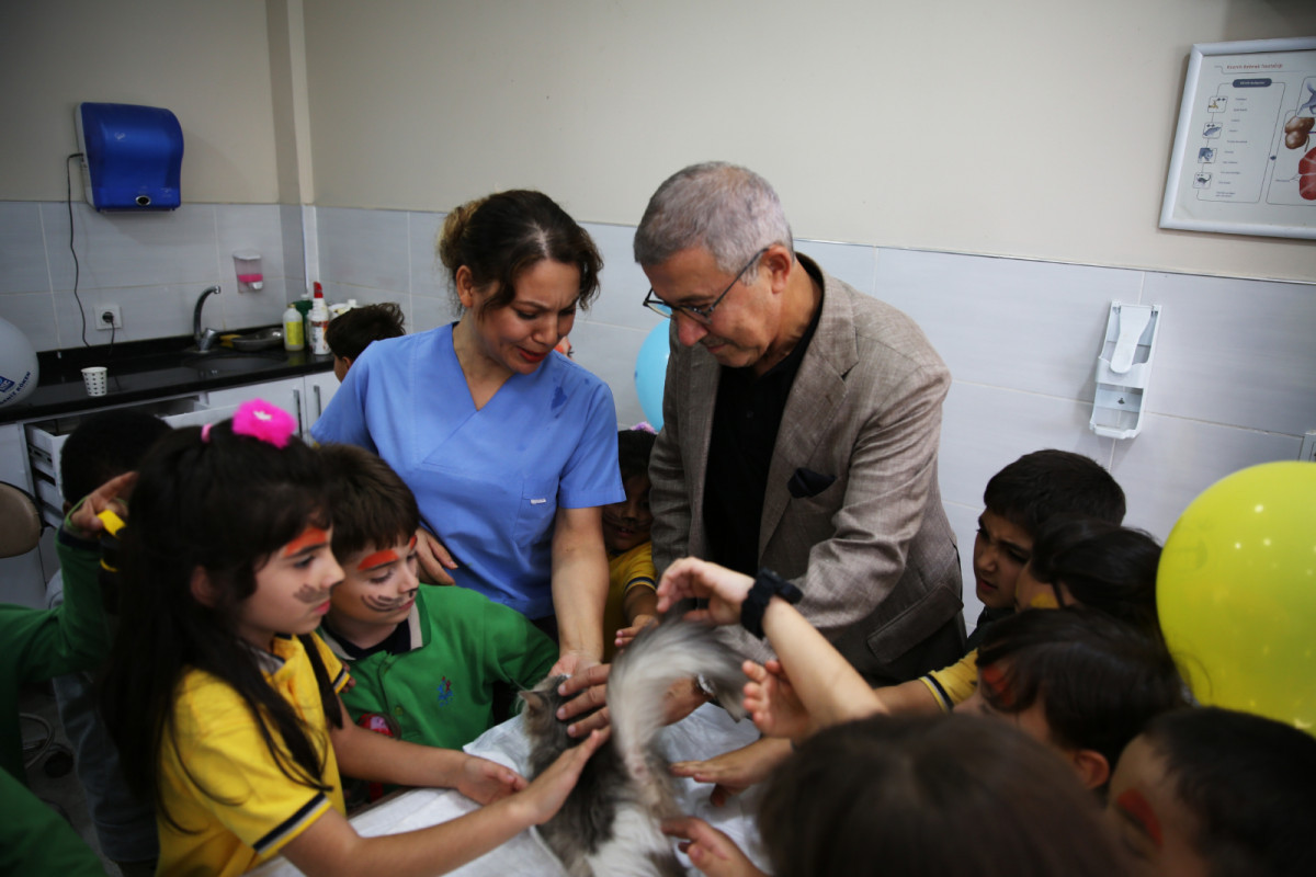 Çocuklara hayvan sevgisi aşılamak, minik dostlara karşı duyarlılıklarını artırmak amacıyla düzenlenen bu anlamlı etkinlikte ESA (Eyüpsultan Belediyesi Anaokulları ve Akademisi), Nejat Sabuncu İlkokulu ve Düğmeciler Anaokulu öğrencileri, klinik bahçesinde bulunan kedi ve köpekleri sevdiler.