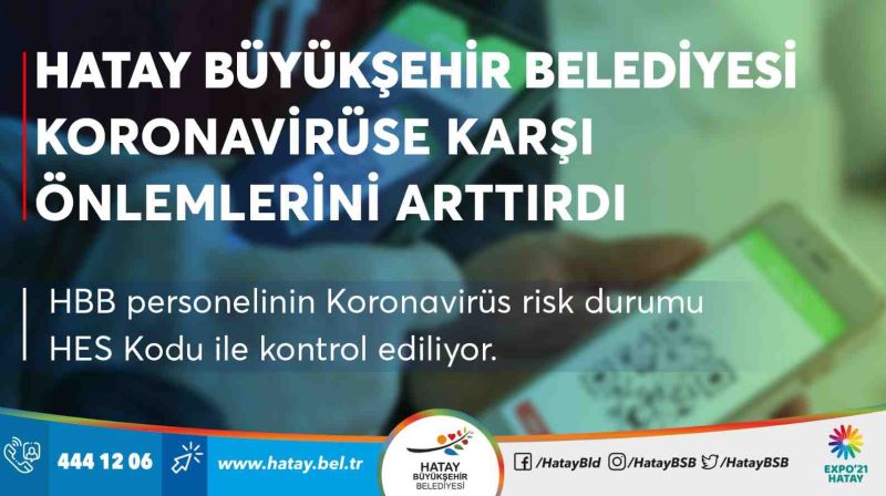 Koronavirüs salgını başladığı günden bugüne tüm birimleriyle insan sağlığını korumak için çalışan Hatay Büyükşehir Belediyesi(HBB), ülke genelinde vakaların artmasıyla birlikte kurum içi denetimlerini sıkılaştırdı. HBB Bilgi İşlem Dairesi Başkanlığı, belediye personelinin koronavirüs risk durumlarını ve HES Kodu geçerlilik sürelerini belirli aralıklarla kontrol etmek amacıyla Sağlık Bakanlığı ile HES Kodu entegrasyonu sağladı. Bu sayede, hem kurum personelinin hem de belediye hizmetlerinden faydalanmak üzere belediyeye gelen vatandaşların sağlığı güvence altına alınacak.