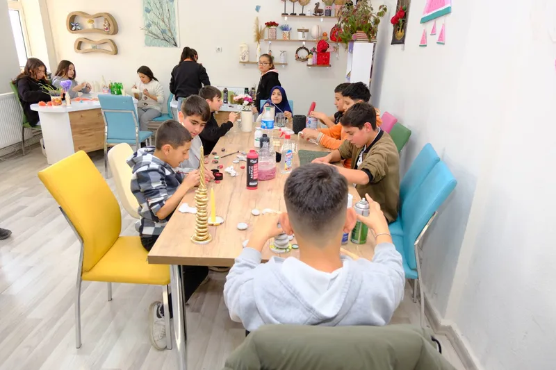 Eğlenceli ve öğretici etkinliklerin düzenlendiği atölyelerde çocuklar; kâğıt, plastik ve benzeri atıkları kullanarak yaratıcı ve işlevsel ürünler tasarlıyor. Bu çalışmalarla çevre bilincinin erken yaşta kazandırılması hedeflenirken, çocukların el becerileri ve üretkenlikleri de geliştiriliyor.
