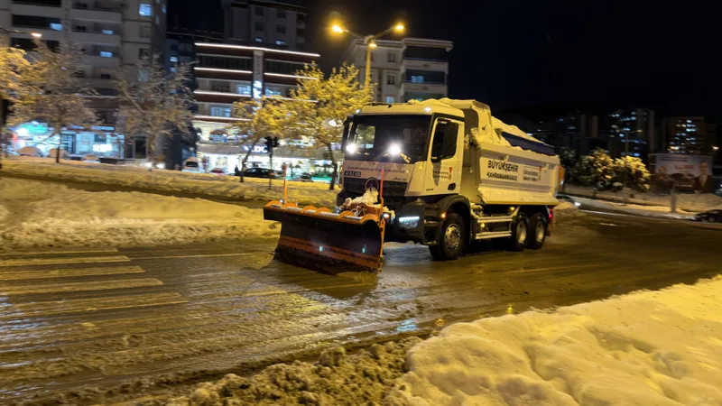 Kahramanmaraş Büyükşehir Belediyesi, şehir genelinde etkili olan kar yağışının günlük yaşamı ve ulaşımı olumsuz etkilememesi için sahadaki çalışmalarını aralıksız sürdürüyor. Vatandaşların güvenli ve konforlu ulaşım sağlayabilmesi amacıyla ekipler, şehrin dört bir yanında yoğun bir mesai harcıyor.