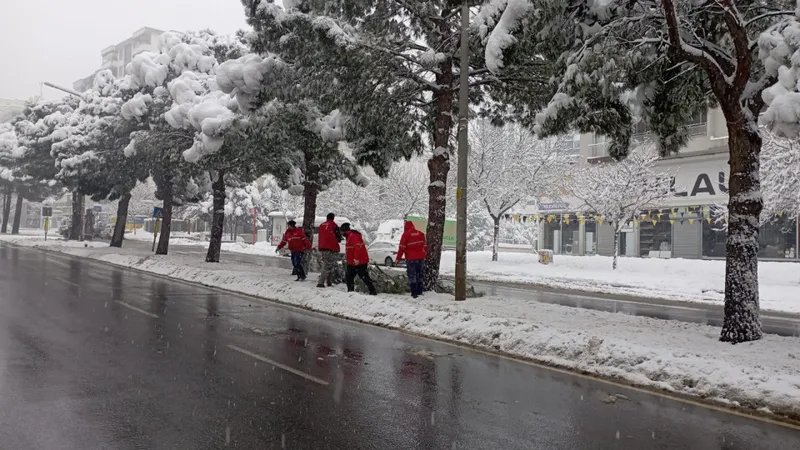 Kent Estetiği ve Yeşil Alanlar Dairesi Başkanlığı ekipleri, özellikle şehir merkezinde kar yağışı neticesinde kırılan ağaç dallarını titizlikle topluyor. Bu çalışmalarla, kırık dalların neden olabileceği yaya ve araç güvenliği tehditlerinin önüne geçiliyor.