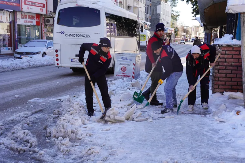 İlçe genelinde başta ana arterler olmak üzere mahalle yolları, kaldırım ve kamuya açık alanlarda kar küreme ve temizlik çalışmaları titizlikle yürütülüyor. Buzlanmaya karşı gerekli tüm önlemler alınıyor.