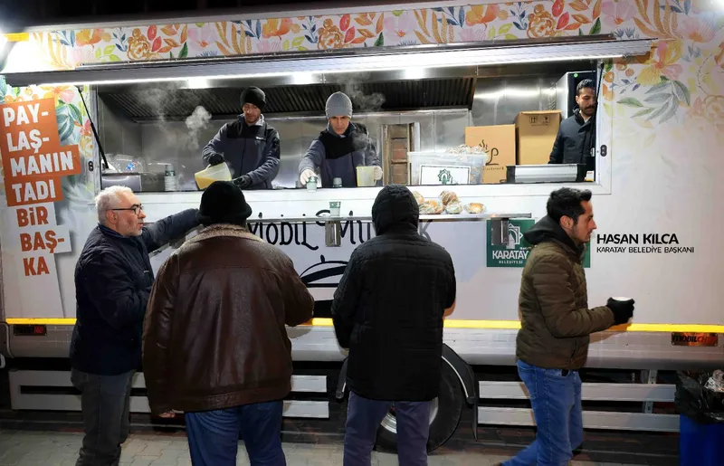 Karatay Belediyesi, kış şartlarının etkili olduğu günlerde mobil ikram araçları aracılığıyla vatandaşlara sıcak çorba ikramında bulunuyor.