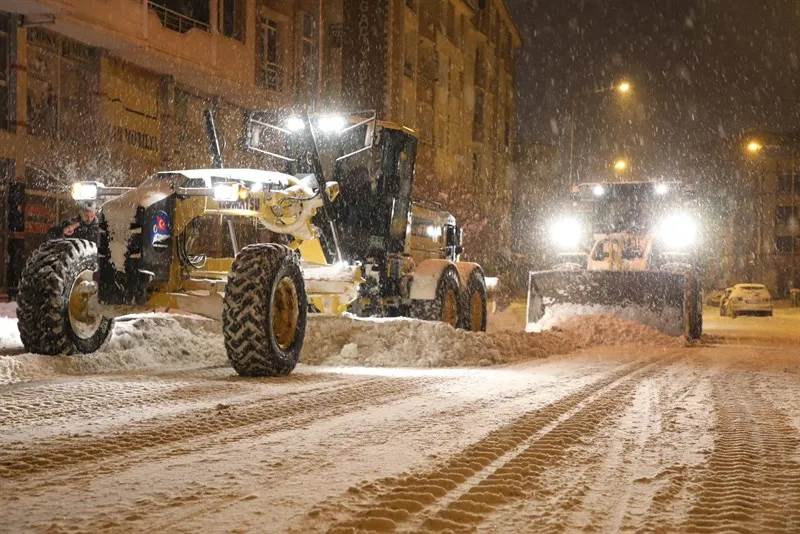 Belediye ekipleri, ana arterler başta olmak üzere tüm mahallelerde kar küreme ve tuzlama çalışmalarını kesintisiz bir şekilde, 7/24 esasına göre sürdürüyor.