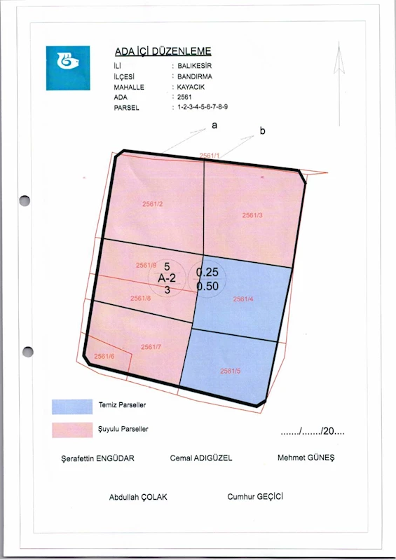 Belediye Encümeninin 12.02.2025 tarih ve 118 sayılı Encümen kararı ile Kayacık Mahallesi, 2561 ada 1-2-3-4-5-6-7-8-9 nolu parsellere ait ada içi düzenlemesinin, 1/1000 ölçekli Bandırma Uygulama İmar Planı notlarının 137. Maddesi ve 3194 sayılı İmar Kanununun 19. maddesi gereği onaylanmasına,
