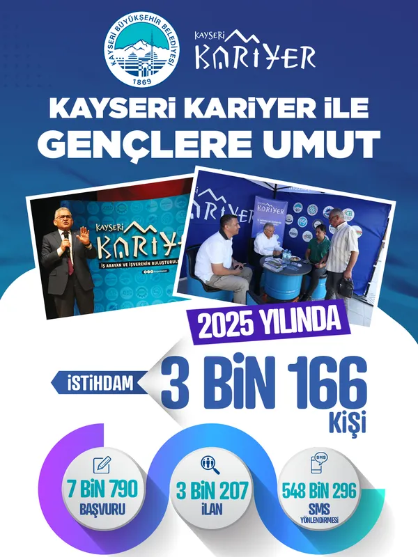 Kentteki üniversite ve meslek odaları gibi kuruluşlarla iş birliği yaparak istihdama aracılık eden Kayseri Kariyer Merkezi, 2025 yılında 3 binden fazla vatandaşın iş bulmasına yardımcı oldu. Bu başarı, merkezin iş piyasasındaki etkin rolünü ve sosyal belediyecilik hedeflerine ulaşmadaki kararlılığını gözler önüne seriyor.