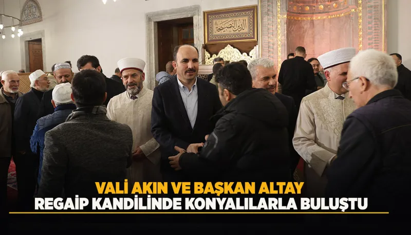 Konya Valisi İbrahim Akın ve Konya Büyükşehir Belediye Başkanı Uğur İbrahim Altay, Sultan Selim Camii’nde düzenlenen Regaip Kandili programında Konyalılarla buluştu.
