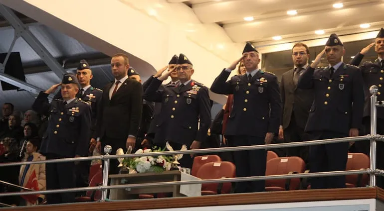 Program, sancağın tanıtılması, saygı duruşu ve İstiklal Marşı'nın okunmasıyla başladı. Eğitimlerini başarıyla tamamlayan uzman erbaş adayları, Türk Bayrağı ve silah üzerine ellerini koyarak yemin etti.
