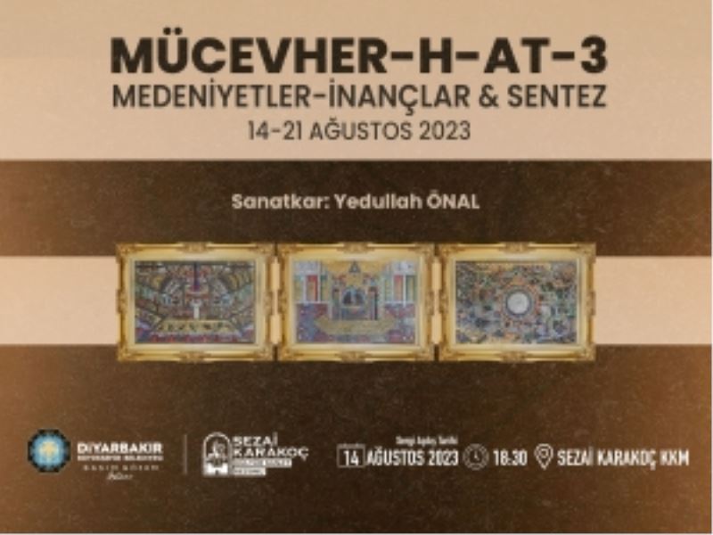 Diyarbakır Büyükşehir Belediyesince organize edilen “Mücevher-h-at-3 Medeniyetler-İnançlar & Sentez” karma resim sergisi 14 Ağustos’ta açılacak.