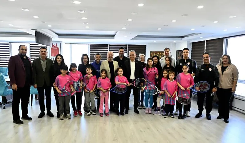 Muratpaşa Belediyesi’nin lisanslı minik tenisçileri, Belediye Başkanı Ümit Uysal’ı makamında ziyaret etti. Sporcular, kendisine çiçek takdim ederek spora ve kişisel gelişimlerine sağlanan destekler için teşekkürlerini iletti. Muratpaşa Belediyespor Başkanı Özcan Yılmaz, belediyenin spor eğitmenleri ve minik sporcuların aileleri de ziyarette hazır bulundu.
