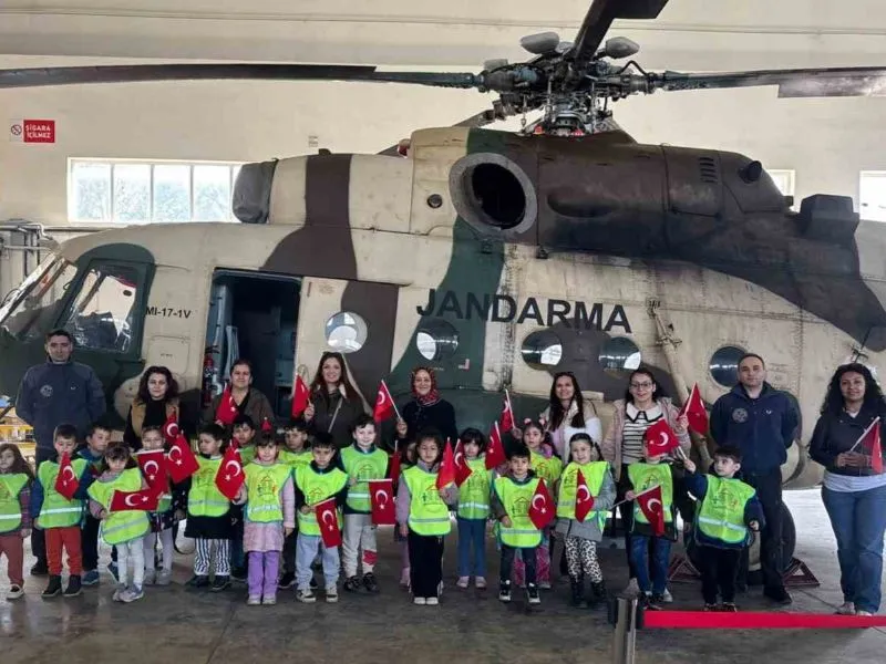 Nazilli Latife Hanım Anaokulu öğrencileri, Aydın Jandarma Filo Komutanlığı'na gerçekleştirdikleri ziyarette unutulmaz bir deneyim yaşadı. Çocuklar, komutanlık envanterinde bulunan helikopterler ve insansız hava araçlarını (İHA) yakından inceleme fırsatı bularak büyük heyecan yaşadı.