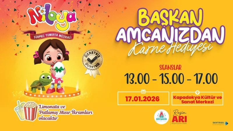 Nevşehir Belediyesi, çocukların ara tatilini keyifli ve verimli geçirmesi için özel bir etkinlik hazırladı. 17 Ocak 2026 Cumartesi günü Kapadokya Kültür ve Sanat Merkezi'nde düzenlenecek olan Niloya Müzikali'ne tüm çocuklar ve aileleri davet ediliyor.