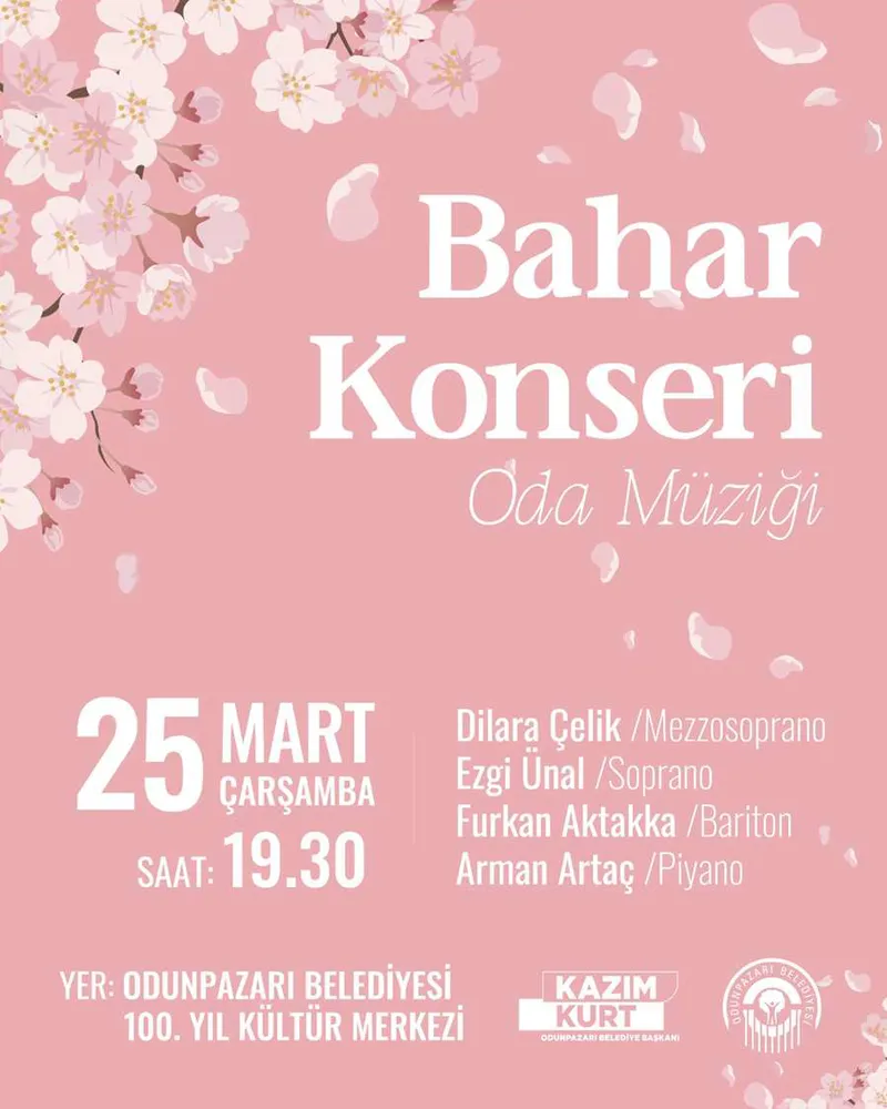 Odunpazarı Belediyesi, kültür ve sanat etkinliklerine bir yenisini ekliyor. Belediyenin organize ettiği "Bahar Konseri", oda müziğinin seçkin eserleriyle sanatseverlere unutulmaz bir akşam vadediyor.