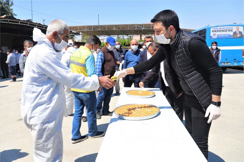 Diğer yandan; salgın nedeniyle, İçişleri Bakanlığı genelgesiyle evden çıkmalarına kısıtlama getirilen 65 yaş ve üstü vatandaşlarımız ile kronik hastalığı olan insanlarımıza ulaşarak, her türlü talep ve ihtiyaçlarını karşılayan Zabıta Müdürlüğü ekiplerimize baklava ikram ederek, moral verdik.