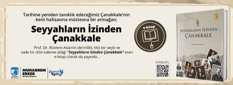 Troya Kazı Başkanı Prof. Dr. Rüstem Aslan’ın, kente gelen seyyahların yüzyıllara yayılan izlenimlerini sade ve anlaşılır bir dille kaleme aldığı "Seyyahların İzinden Çanakkale" eserine internet sitesi üzerinden de erişmek mümkün.