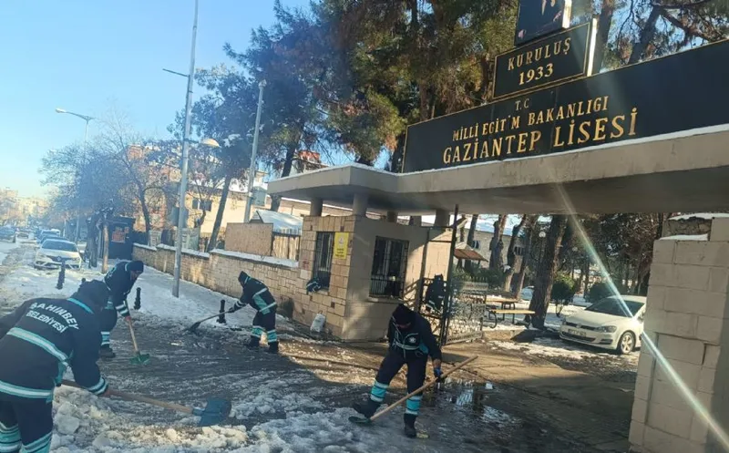 Şahinbey Belediyesi Fen İşleri ve Temizlik İşleri Müdürlüğü ekipleri, kar yağışının durmasının ardından ilçe genelindeki tüm okulların yol, kaldırım ve çevrelerinde yoğun bir temizlik çalışması yürüttü. Okul yaya yolları ile ana ulaşım güzergâhları kardan arındırılarak eğitim-öğretime hazır hale getirildi. Çalışmalar, öğrencilerin herhangi bir engelle karşılaşmadan okullarına ulaşabilmesini hedefledi.