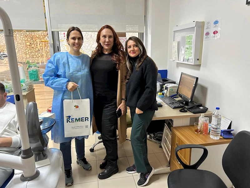 Diş hekimleri ile sohbet eden Sayındaş, Kemer Belediye Başkanı Necati Topaloğlu'nun selamlarını iletti, diş hekimlerine Kemer kolonyası vererek günlerini kutladı.