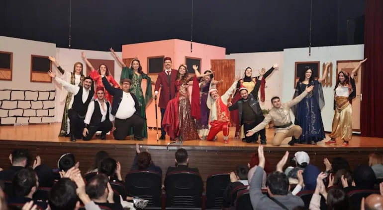 Kütahya Belediyesi Şehir Tiyatrosu oyuncularının sahnelediği, yazarlığını Sadık Şendil'in, yönetmenliğini ise Yasin Namaz'ın üstlendiği oyun; renkli kostümleri, oyunculuk performansları ve sahne kurgusuyla izleyicilere keyifli bir akşam yaşattı.