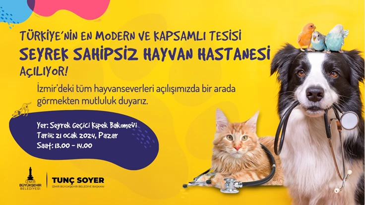 İzmir Büyükşehir Belediyesi tarafından Menemen’de kurulan Türkiye’nin en modern ve kapsamlı sahipsiz hayvan hastanesi yarın açılıyor. “Seyrek Sahipsiz Hayvan Hastanesi”nin açılışı Başkan Tunç Soyer tarafından saat 13.00’te yapılacak.