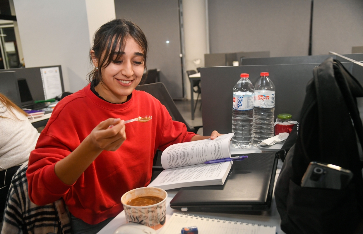 tempolarının arasında bir kase sıcak çorba içip, yeniden ders çalışmaya motive
