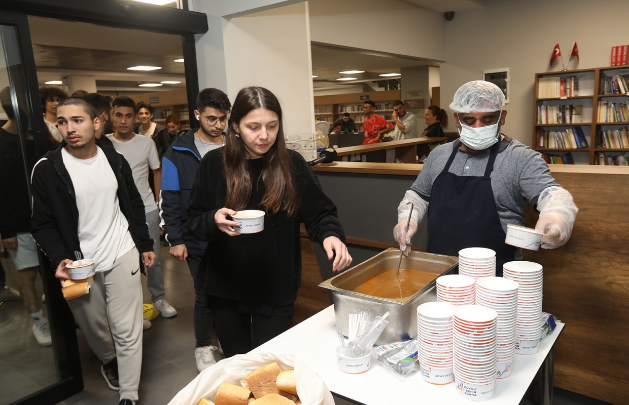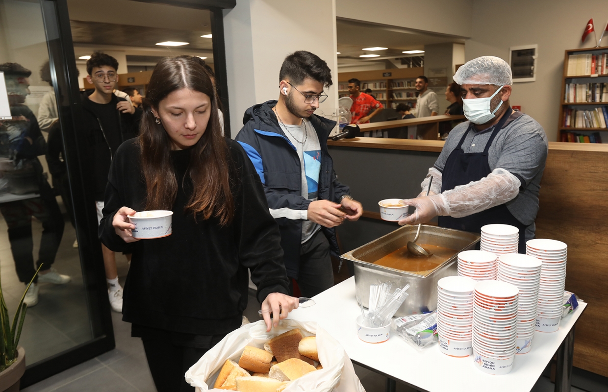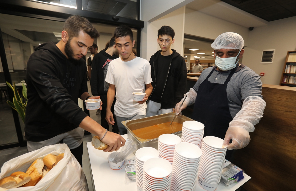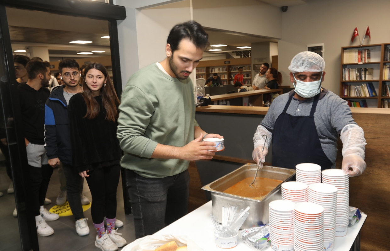 Büyükşehir Belediyesi’nce çorba ikramı yapılıyor. Öğrenciler yoğun ders çalışma
